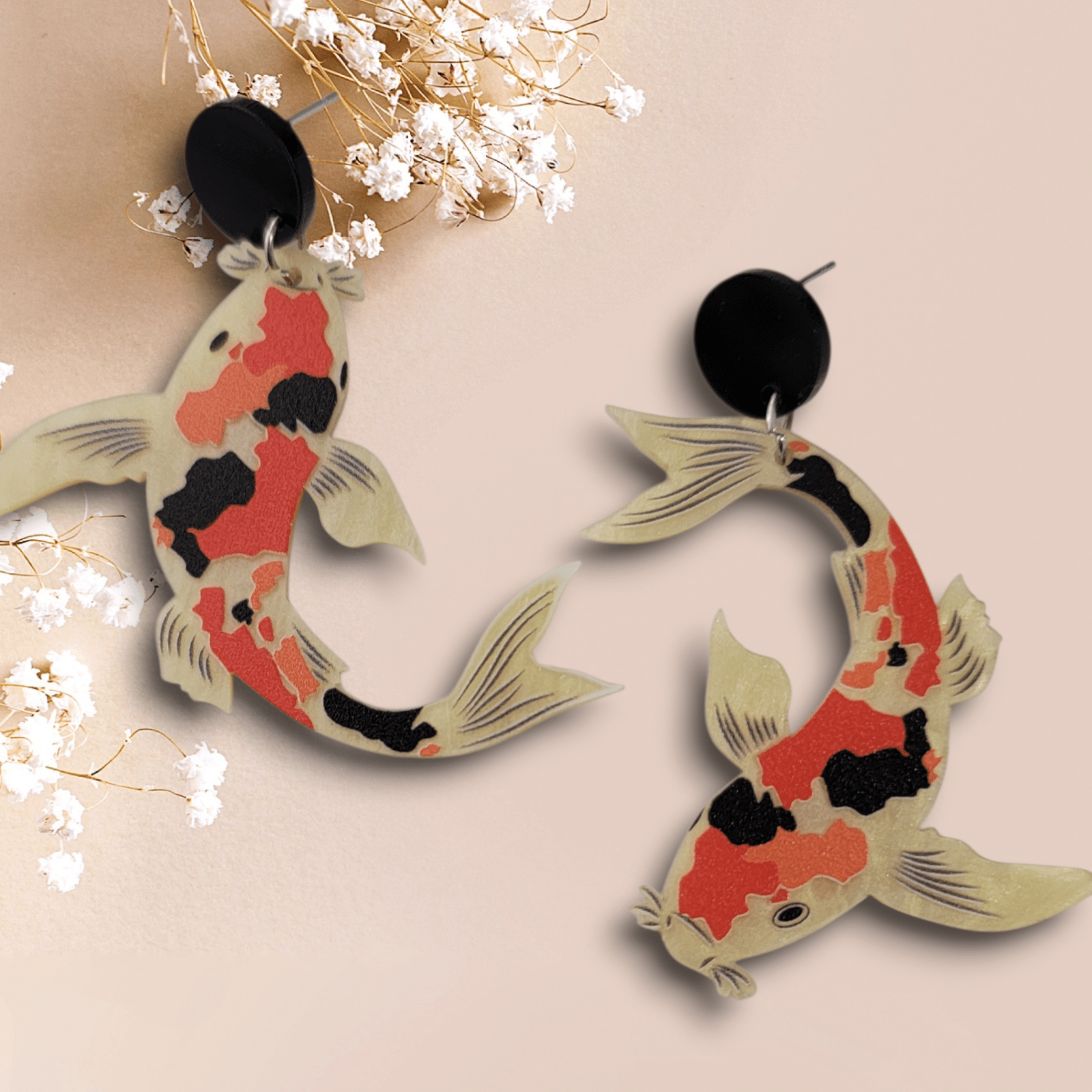 These koi fish earrings make a playful, colorful statement — perfect for adding a touch of nature-inspired charm to any outfit!